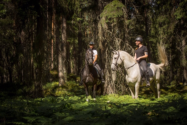 Hos oss får du chansen att utveckla din ridning på välutbildade lusitano. Alla kan skänkelvikning, öppna och sluta och är lätta att rida i samling och flera kan rörelser inom den högre skolan som piaff och passage. Din tränare Jenny fokuserar på dig som ryttare, att din sits och position är korrekt och att tajmingen för dina hjälper är rätt. Hon har ridit in och utbildat alla sina hästar själv och känner dem utan och innan. Detta gör det lätt för henne att se vad du måste förändra eller göra för att få hästen att utföra det du vill.